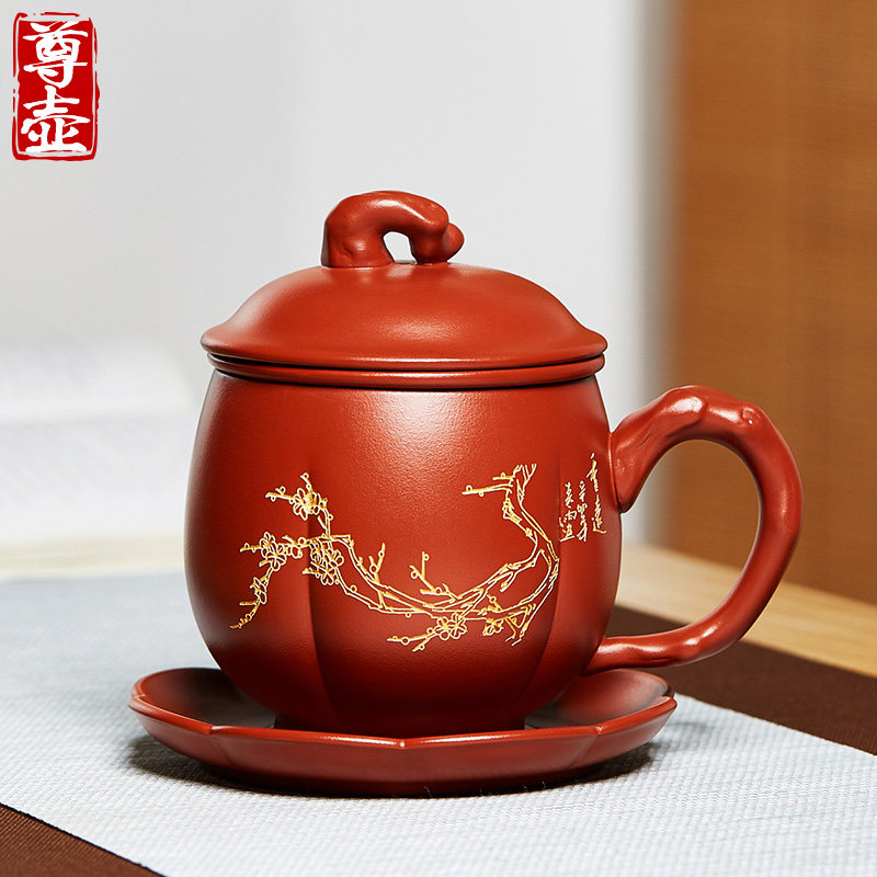 宜兴紫砂杯堆绘变色内胆过滤办公泡茶杯家用茶具大容量男女士杯子