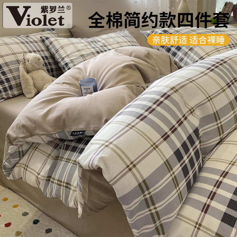 紫罗兰全棉13372北欧风简约四件套纯棉床单被套床上用品学生套件