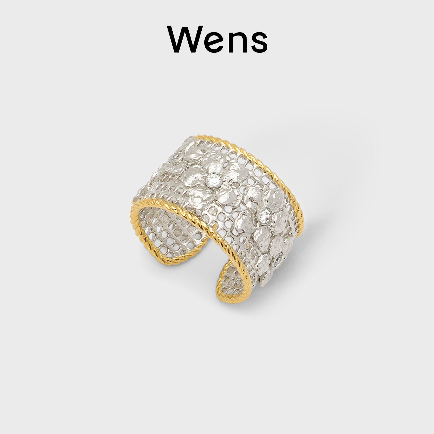 Wens花园系列镂空编织戒指女金银闪耀双色原创设计感轻奢高级耳饰