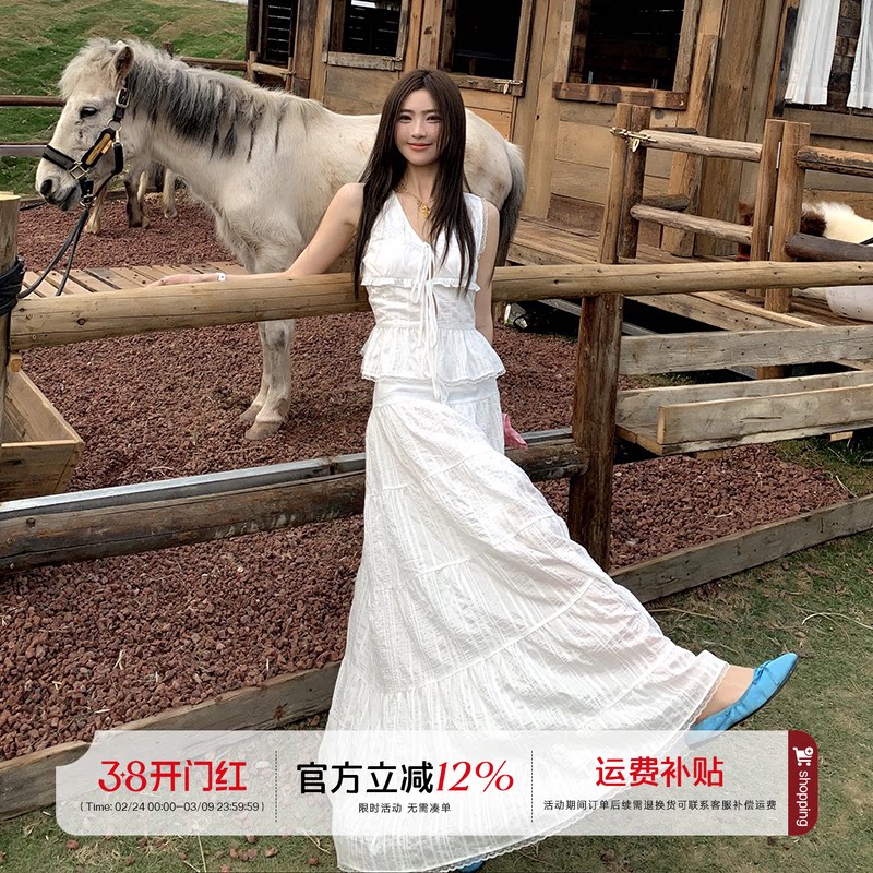 橘子树在哪儿韩系白色套装女春夏纯欲风甜美显瘦吊带半身裙两件套