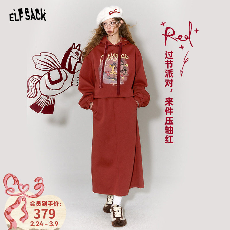 妖精的口袋红色卫衣半身裙两件套装女2026年冬季新款休闲小个子