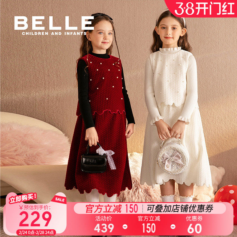 百丽童装无袖背心半身裙女童春季新年套装小女孩小香风儿童两件套