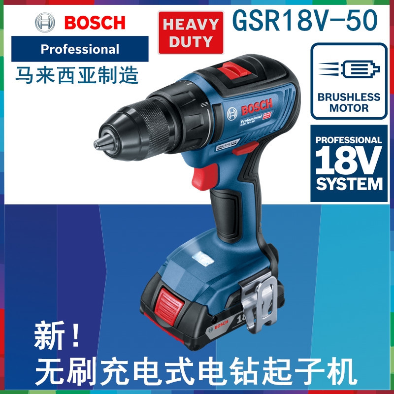 新品博世Bosch充电式电钻GSR18V-50锂电18V无刷电机起子机电池钻