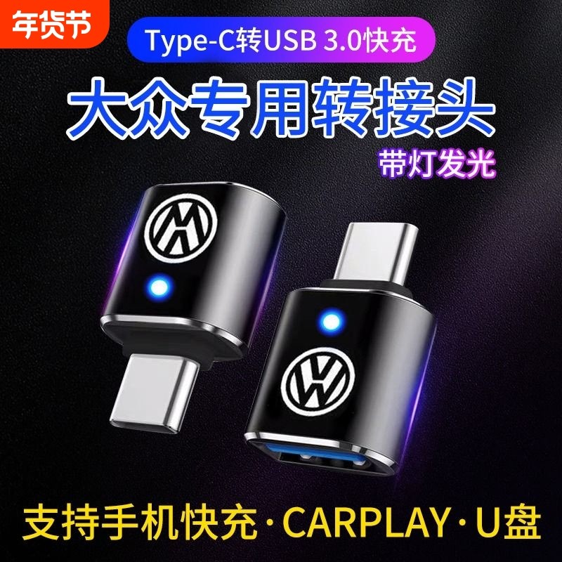 车载USB充电转换器适用于大众迈腾23款探岳朗逸宝来Type-C接口转接头揽镜凌度速腾多功能手机投屏转换连接U盘