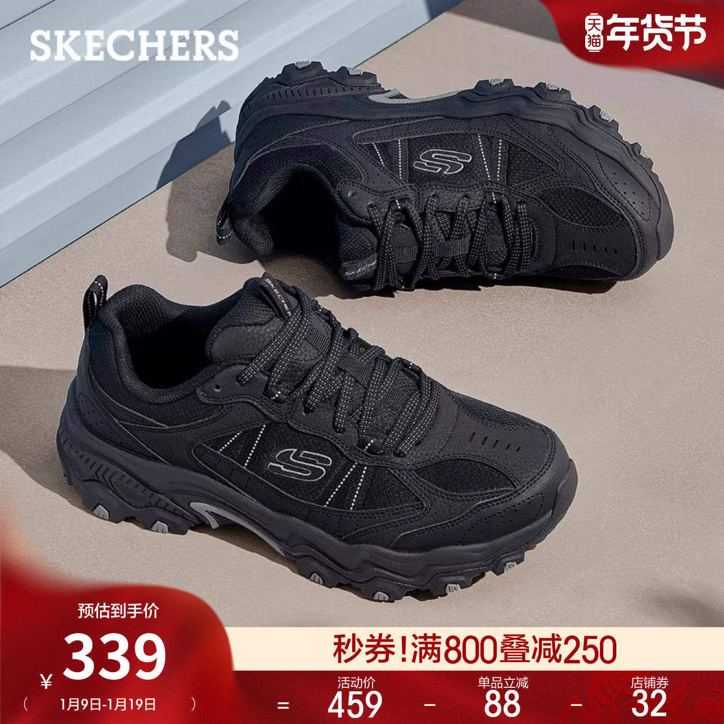 斯凯奇云谷鞋|秋冬男子复古户外鞋厚底舒适轻质徒步鞋休闲运动鞋