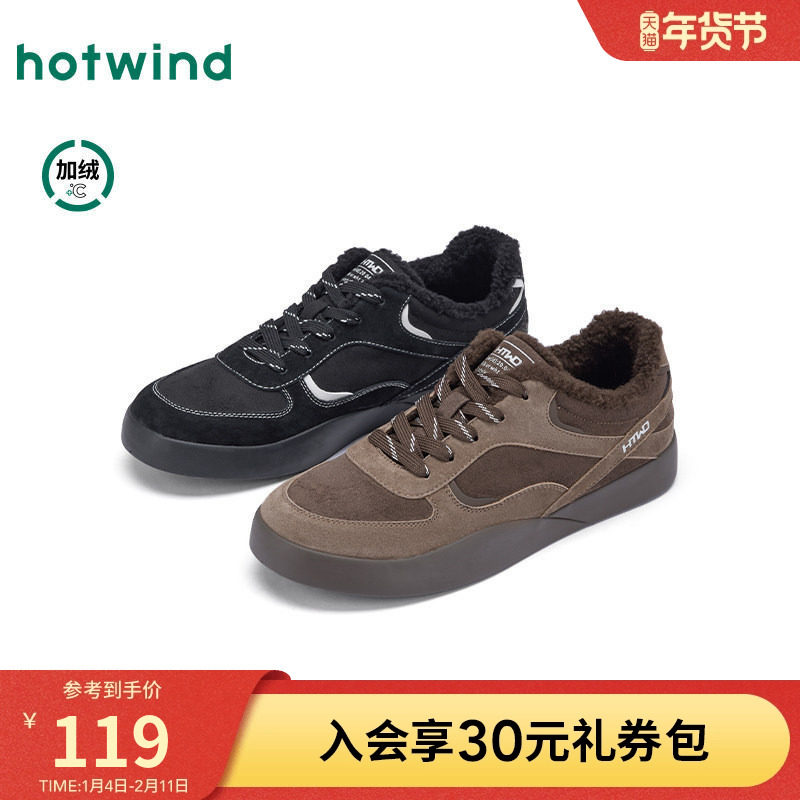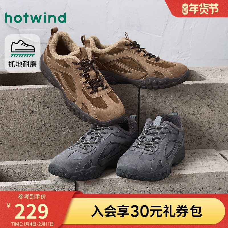 热风男鞋2025年冬季新款男士加绒运动休闲鞋棕色保暖百搭户外鞋子