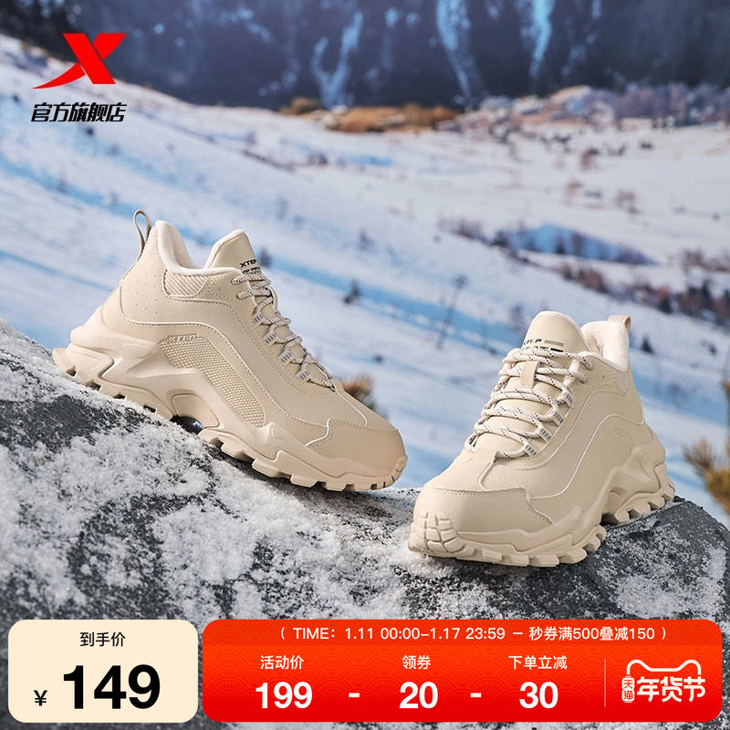 特步暖暖棉鞋女鞋冬季厚底高帮保暖加绒休闲鞋二棉户外鞋运动鞋子
