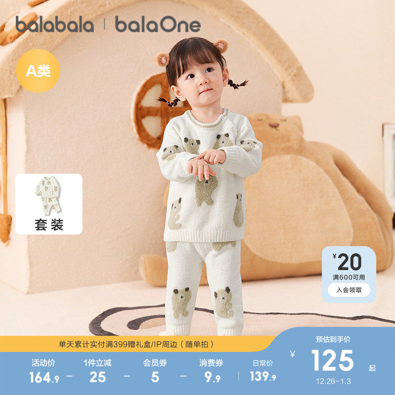 巴拉巴拉童装婴儿内衣套装男女童冬家居宝宝秋衣裤2025新款半边绒