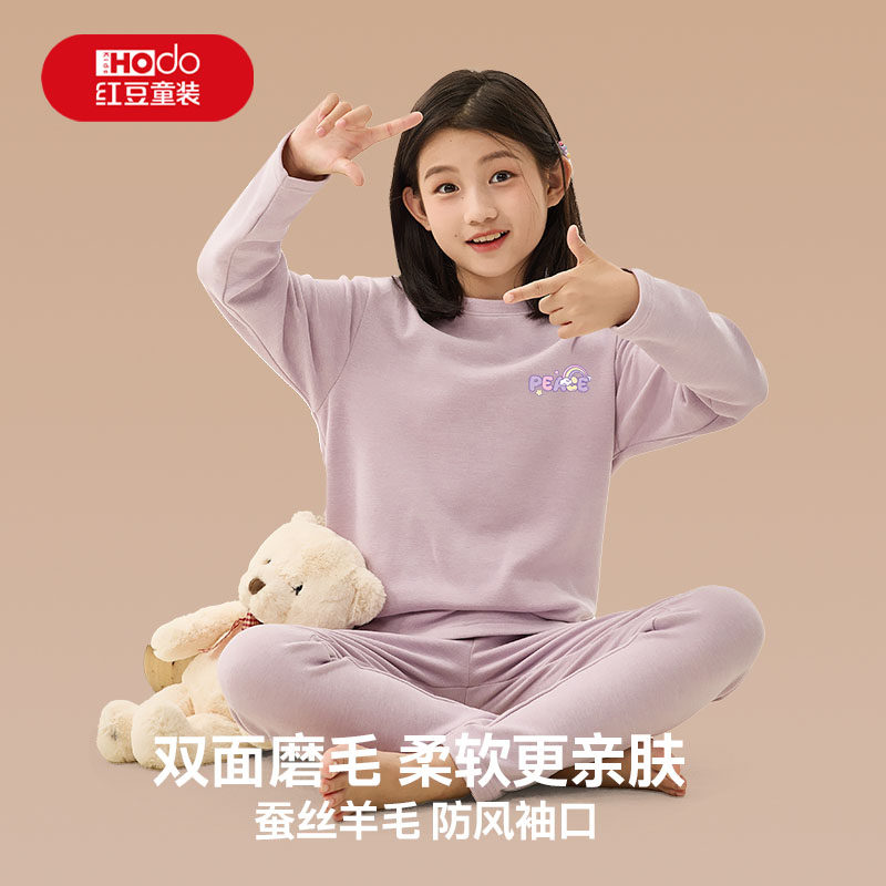 红豆童装女童秋衣裤套装秋冬款2025新款儿童保暖蚕丝羊毛家居服PC