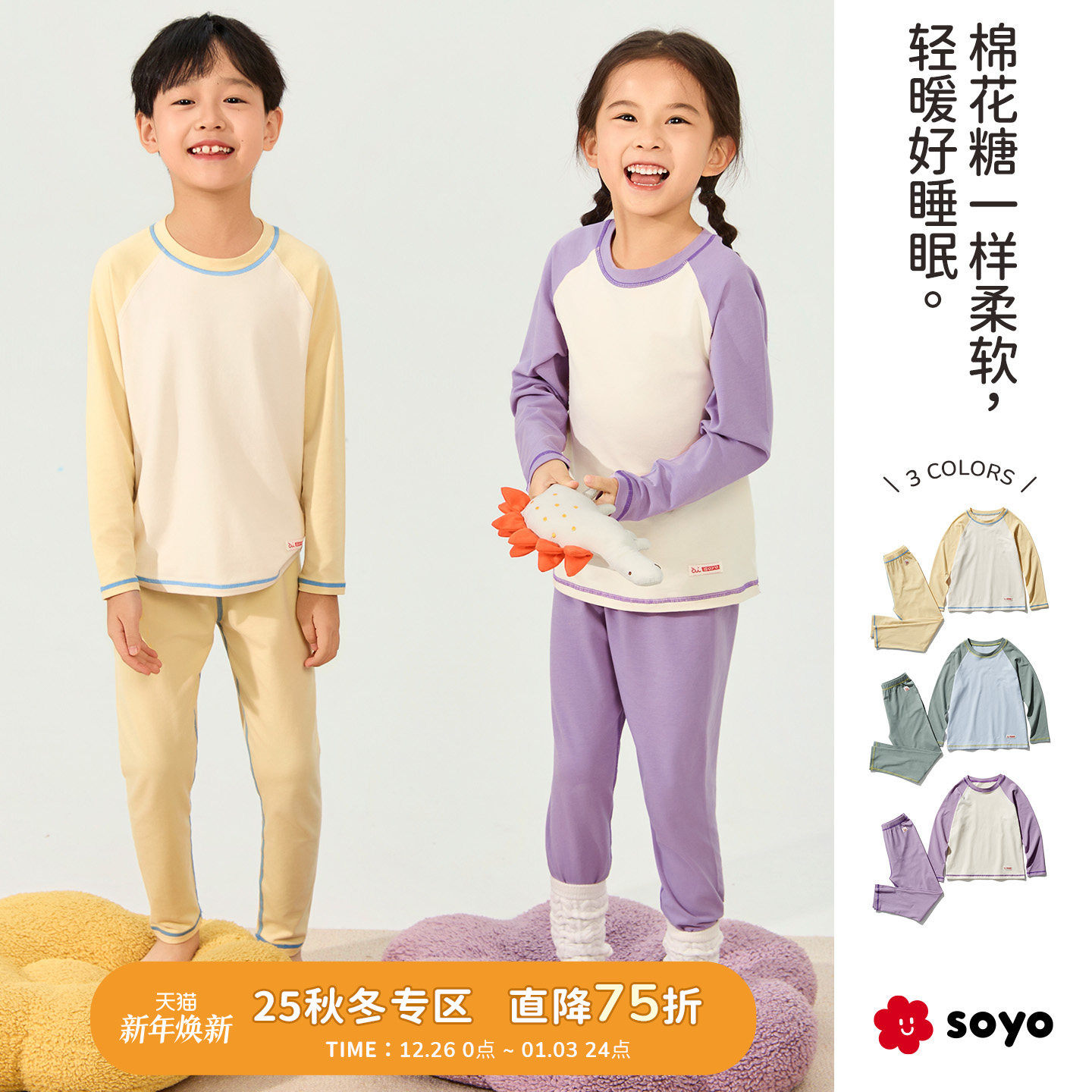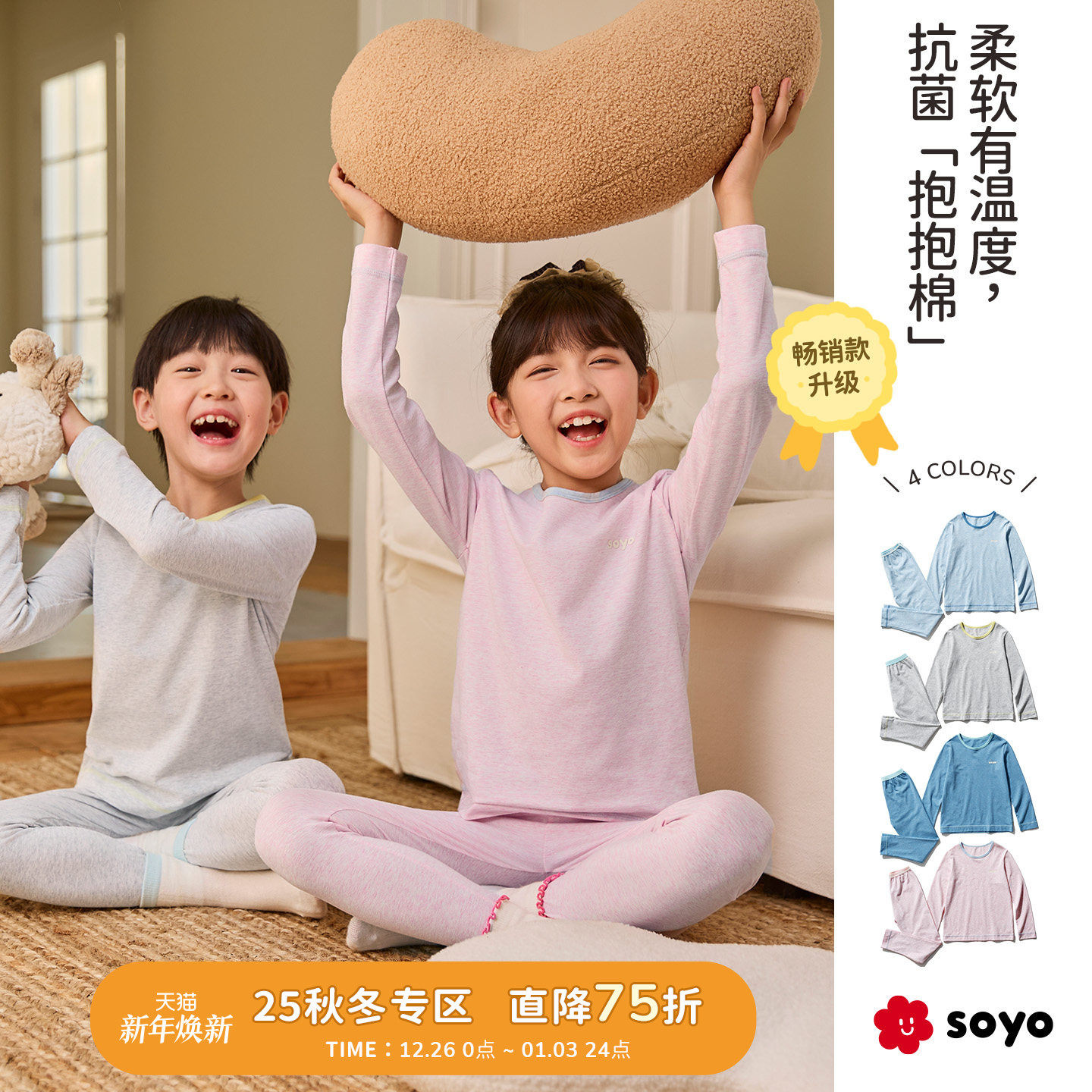 soyo舍予良仓柔软抗菌儿童内衣套装秋冬新款弹力保暖男女童秋衣裤