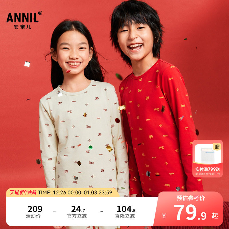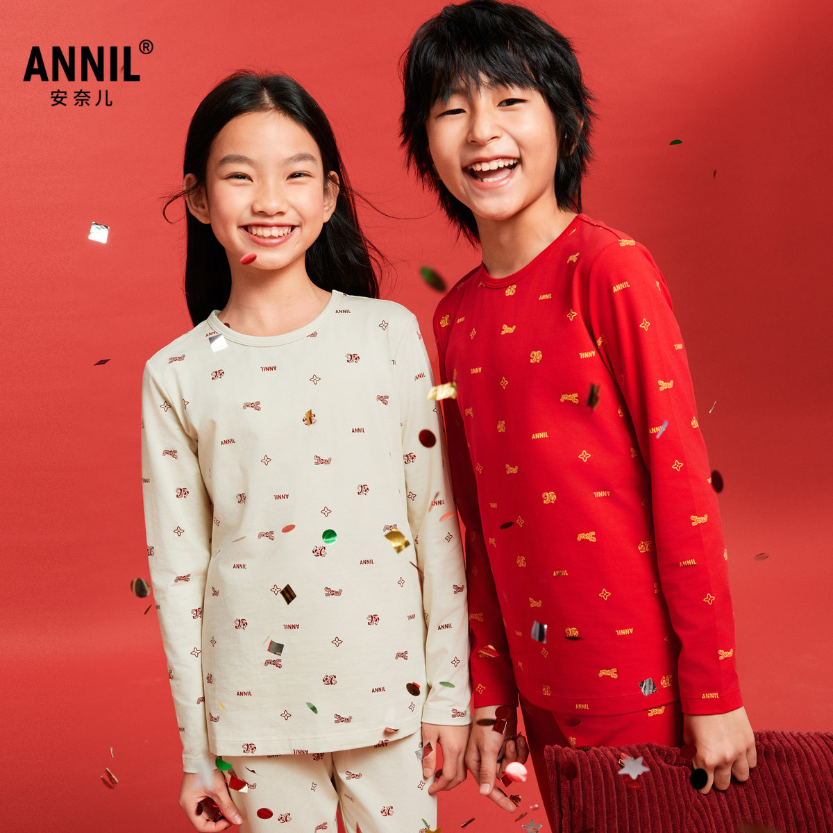 【新年红】安奈儿童装男女童秋衣裤家居服套装2025春本命年打底衫