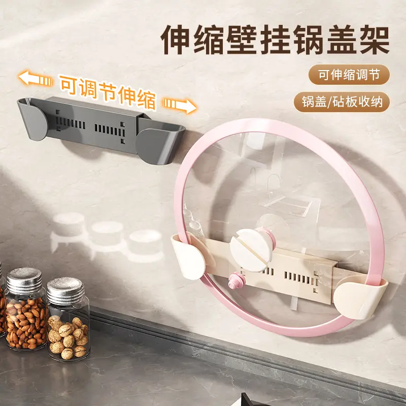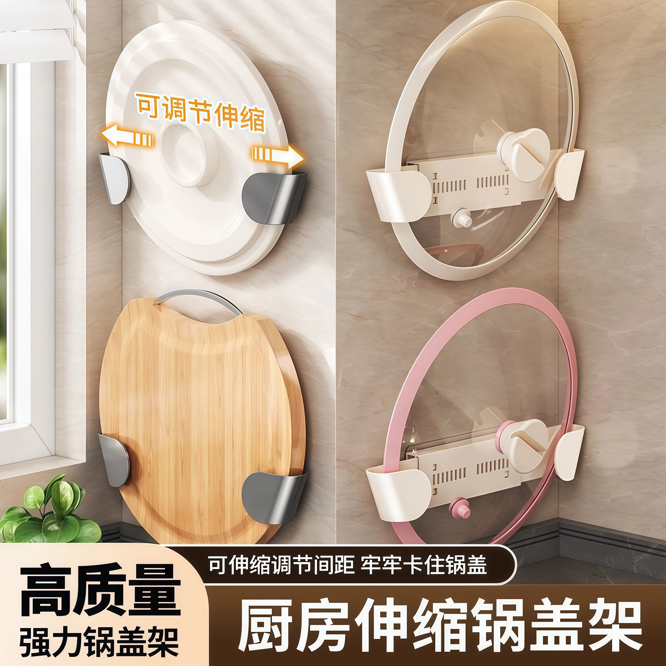 伸缩壁挂锅盖架家用锅盖架免打孔厨房壁挂置物架可调节锅盖收纳架