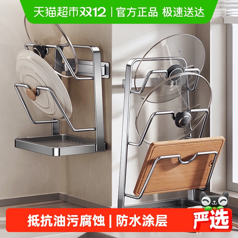 免打孔壁挂锅盖架厨房多功能菜板收纳不锈钢置物架台面整理菜板架