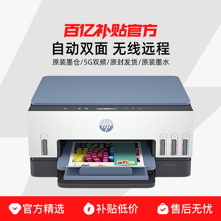HP惠普tank726彩色无线家用小型725墨仓式连供自动双面打印机一体机手机wifi复印扫描A4学生办公专用喷墨照片