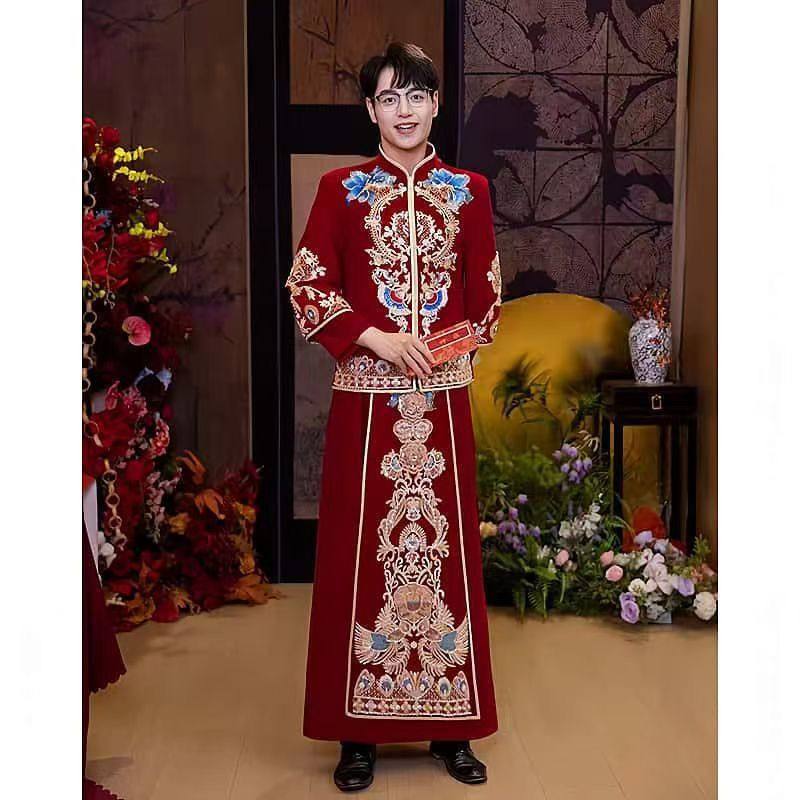 秀禾服男士2024新款大码中式新郎结婚敬酒礼服唐装龙凤褂接亲服男
