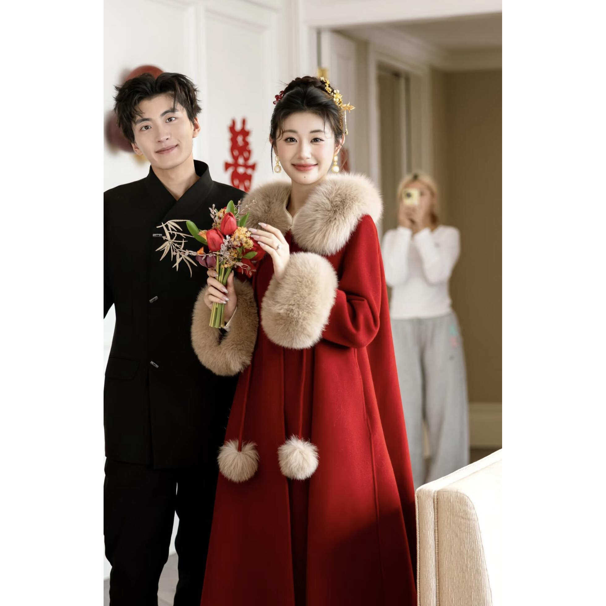新娘婚纱斗篷披肩旗袍礼服斗篷外套结婚敬酒服冬季加厚保暖毛披肩