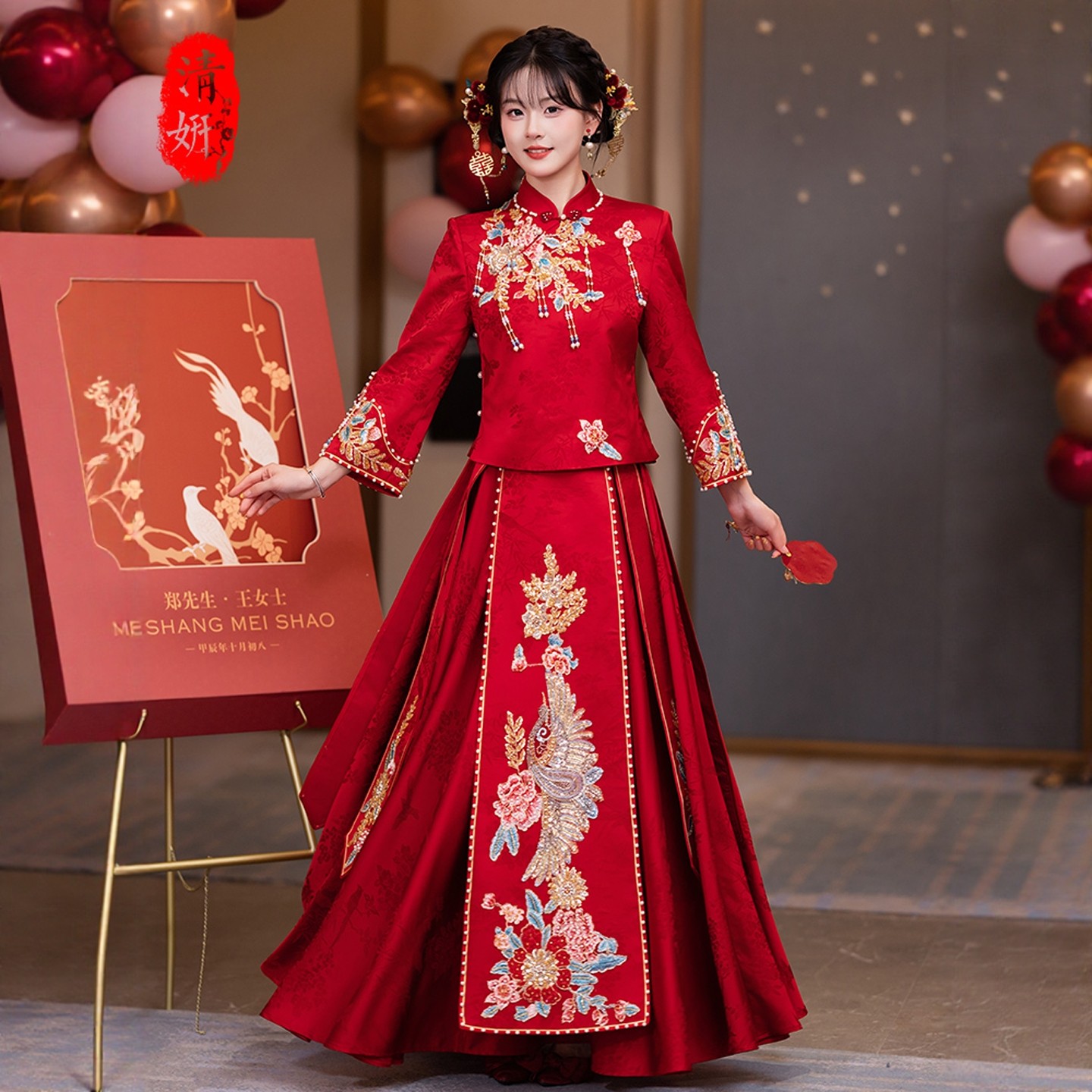 新中式婚服红色套装订婚礼服裙女敬酒服新娘结婚当天便装旗袍回门