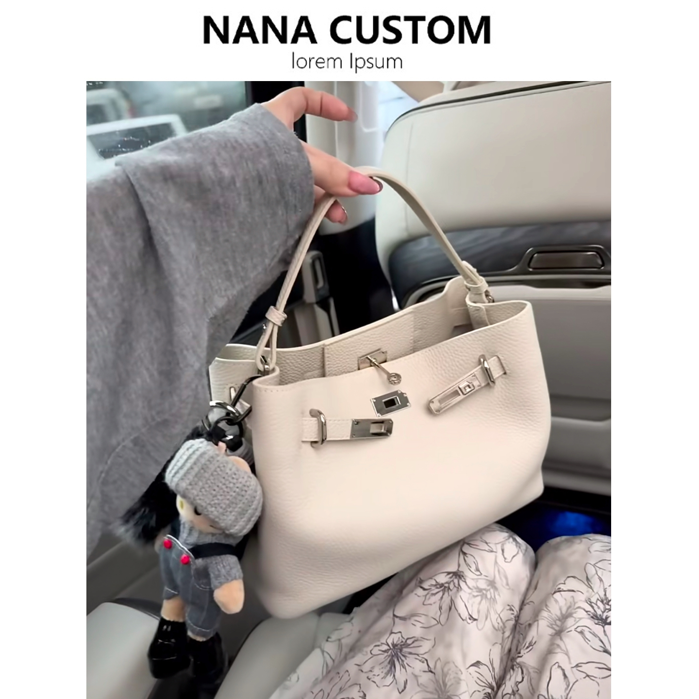 小众白色托特包包女通勤百搭手提水桶包大容量真皮单肩斜挎子母包