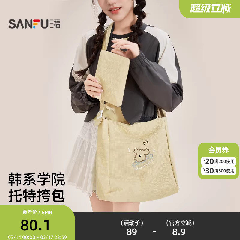 三福挎包春季甜心少女子母韩系枕头包二合一大容量女包498747