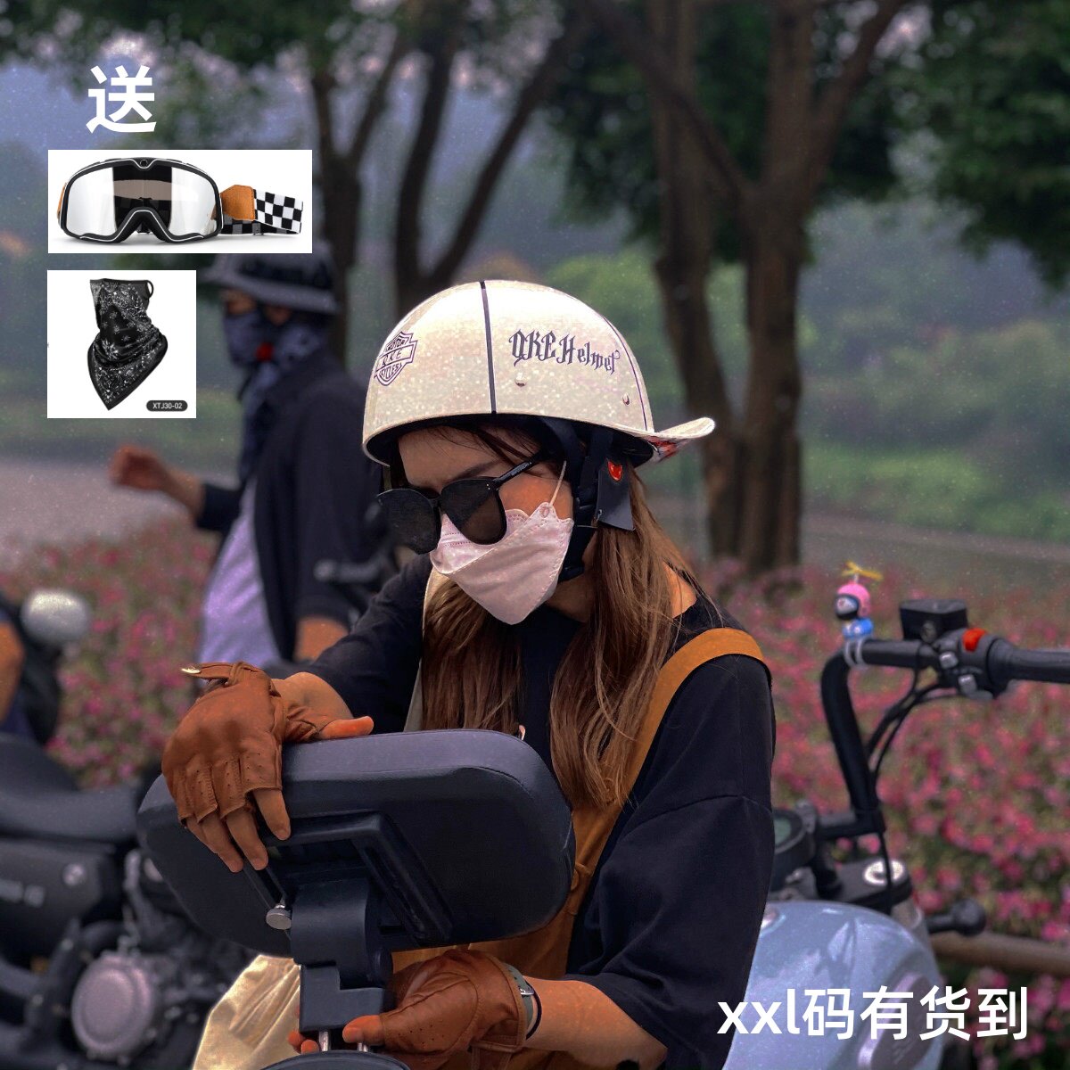复古双镜头盔可爱女夏季3C认证巡航摩托车半盔德式大兵盔瓢盔皮盔