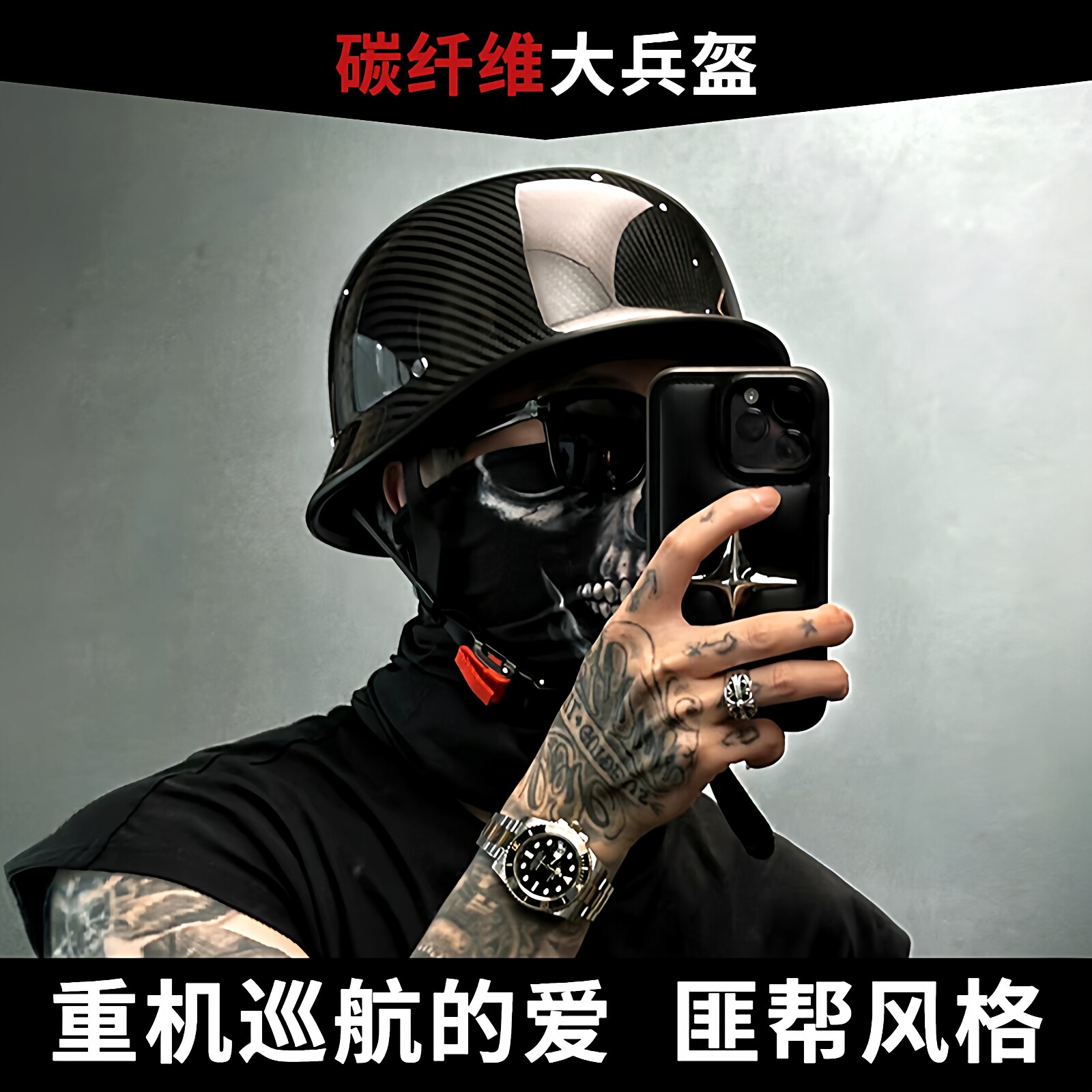 3C德式钢盔复古大兵头盔帮匪混乱之子瓢盔滑板车巡航机车大头围