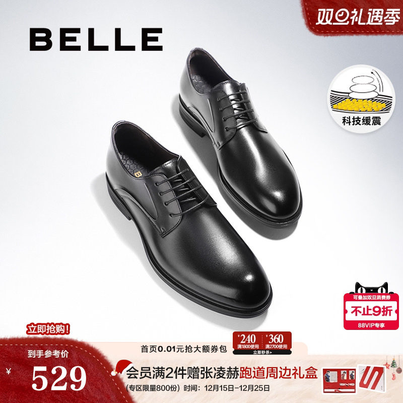 百丽男鞋商务正装鞋结婚鞋真皮新款德比鞋黑色男士皮鞋A0766CM2