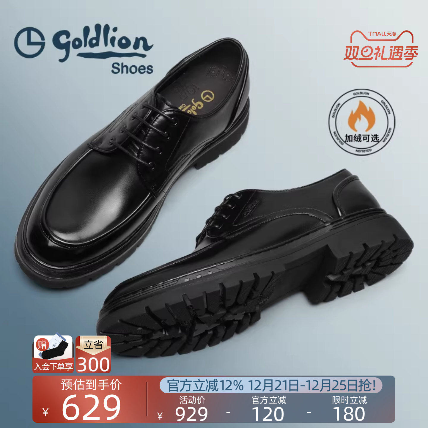 百丽男鞋加绒厚底德比婚鞋男士冬季商务正装鞋休闲真皮鞋A1422AM4