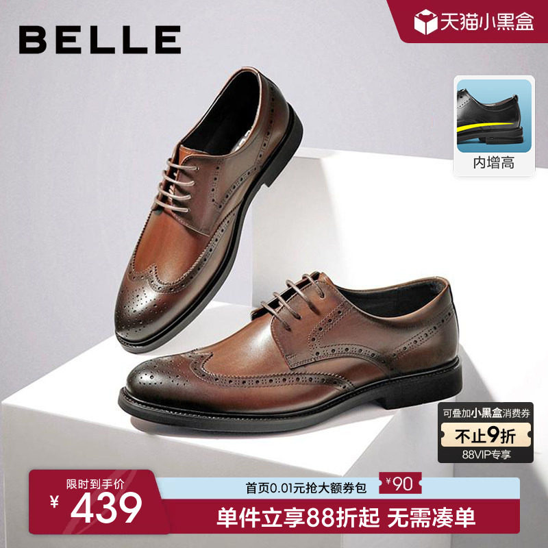 百丽男鞋布洛克皮鞋男士内增高真皮商务正装雕花新郎婚鞋A0523CM1