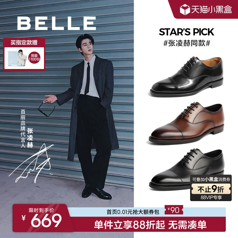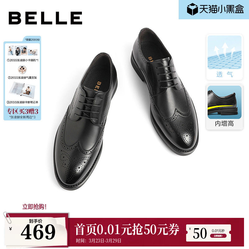 张凌赫同款百丽鞋子男商务正装牛津皮鞋男内增高三接头婚鞋59736