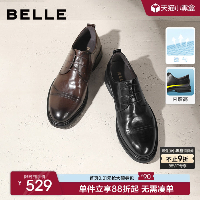 百丽男士商务正装真皮鞋男春季新款增高休闲德比新郎婚鞋B3GK3CM1
