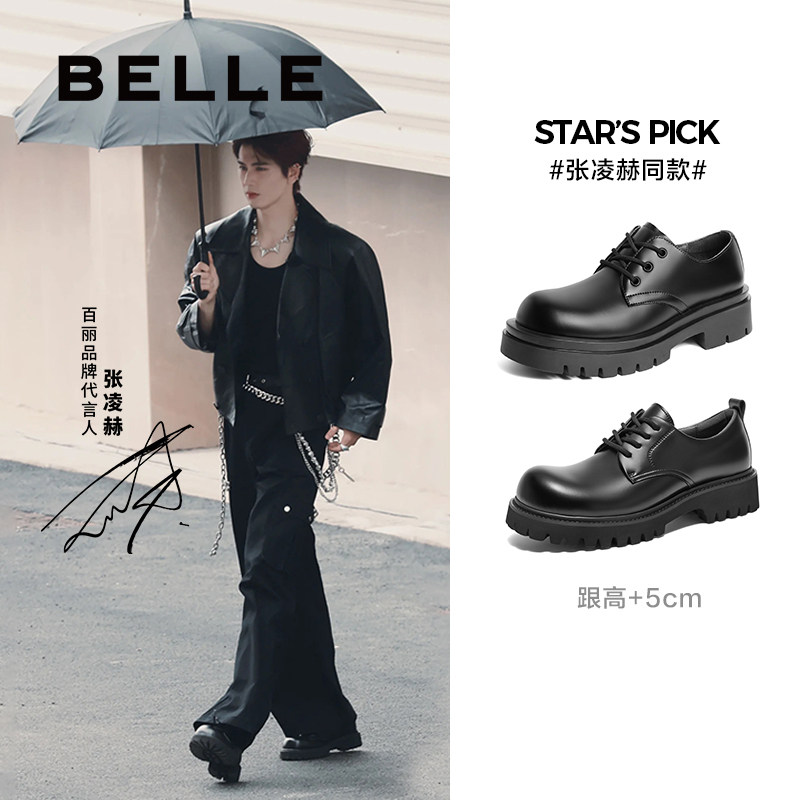 张凌赫同款百丽男鞋厚底增高大头德比新郎婚鞋男士正装皮鞋A1434A