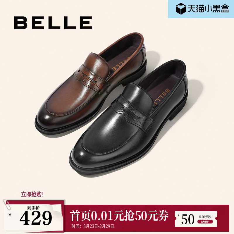 百丽男鞋正装皮鞋新品商场同款一脚蹬真皮商务休闲鞋婚鞋B3GK7CM1