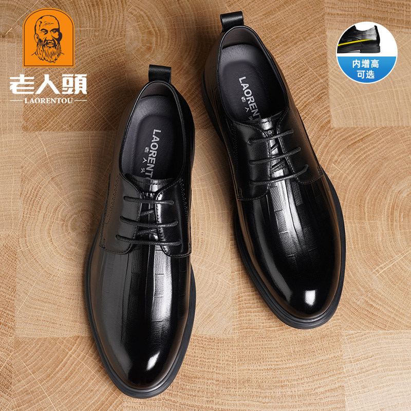 老人头男鞋春夏新款商务正装男士皮鞋真皮增高德比软底新郎结婚鞋