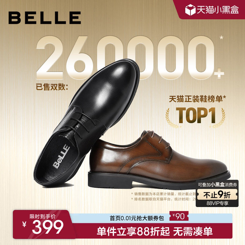百丽男士休闲商务正装皮鞋男2026春季新款牛皮通勤结婚鞋A2297AM6