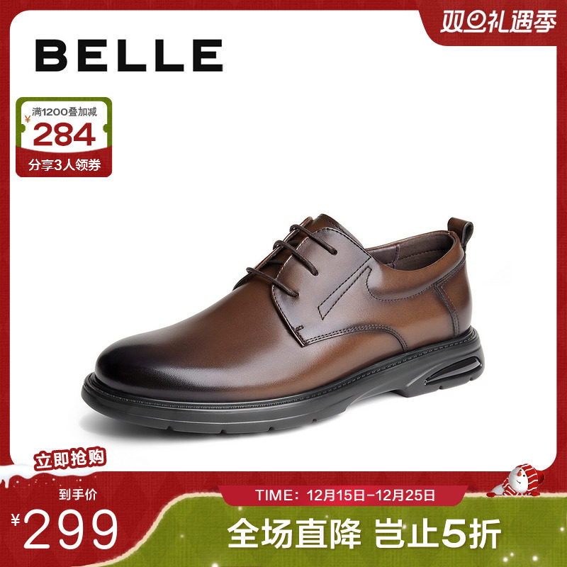 百丽男鞋通勤商务真牛皮鞋男士25冬新商场款正装婚鞋加绒保暖8vs