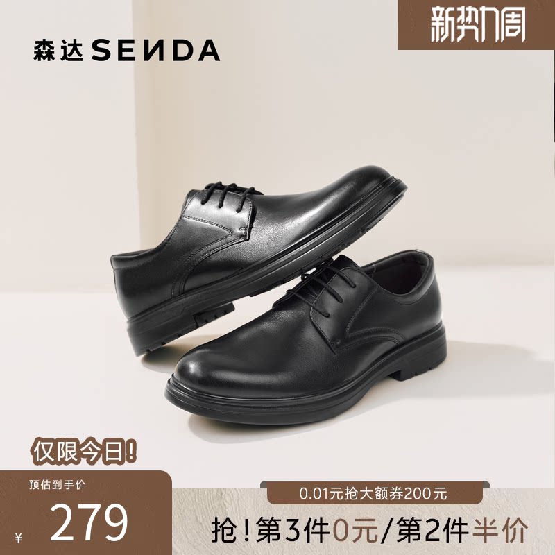 森达男鞋正装皮鞋布洛克雕花商务通勤德比鞋商场同款真皮增高婚鞋