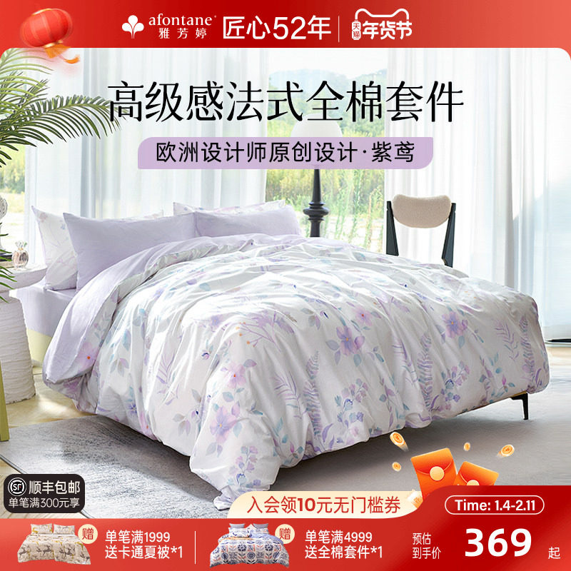 雅芳婷100%全棉三四件套纯棉法式高级感印花被套床笠床上用品套件