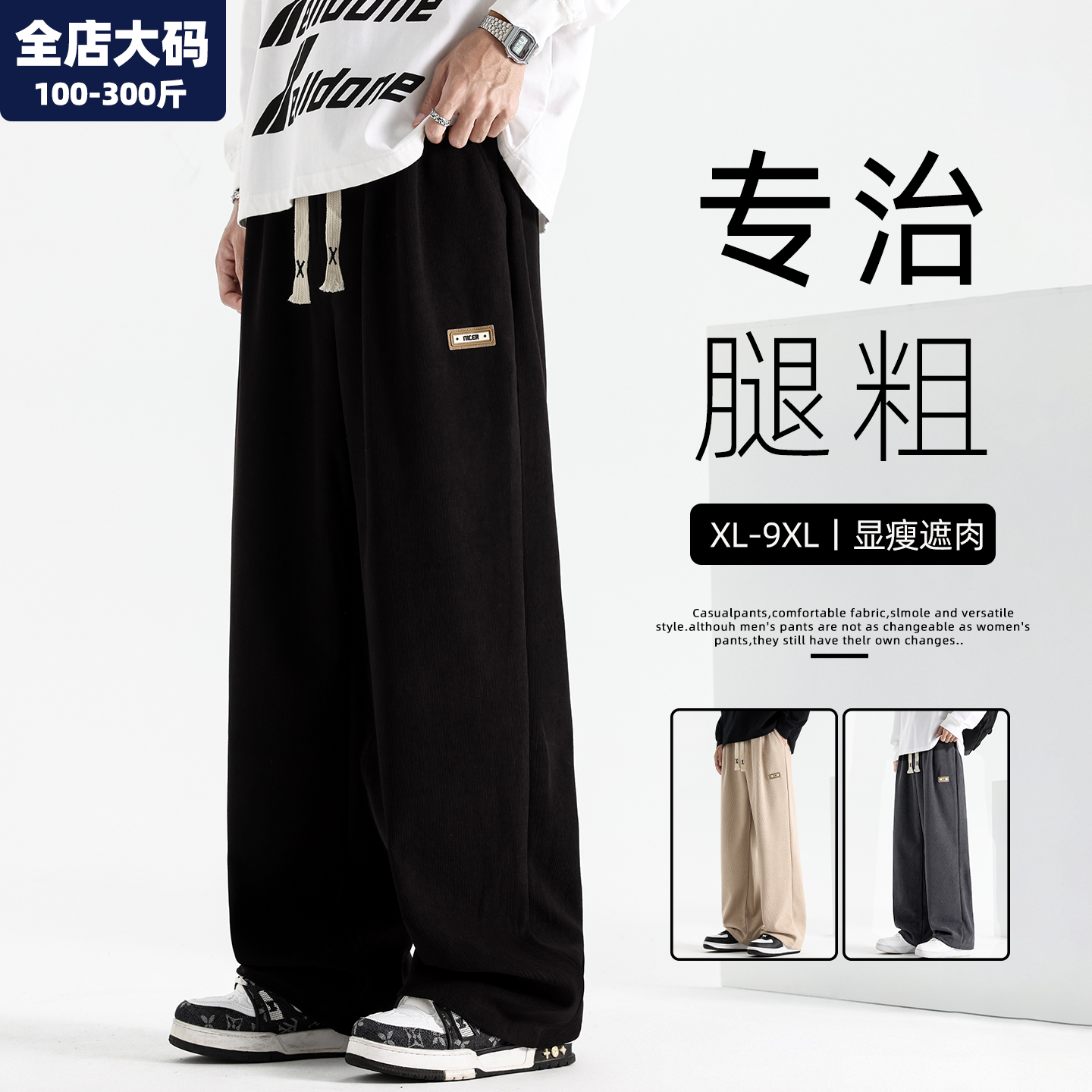 奥莱专柜大码裤子男春秋直筒宽松阔腿长裤加肥加大胖子休闲运动裤