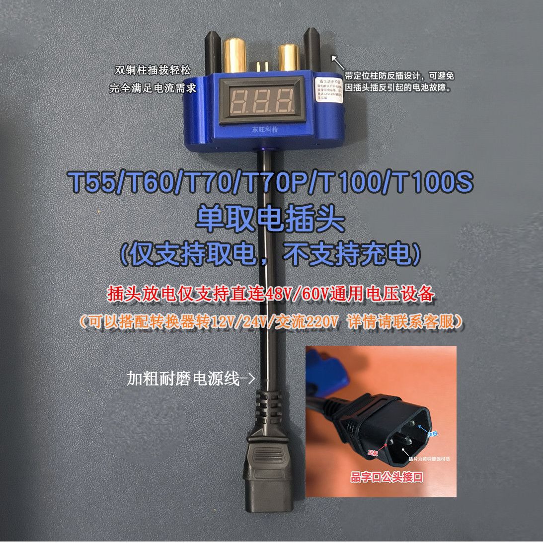 植保机大疆T60 70 100s放电插头T55电池取电带水泵加药48/60V通用