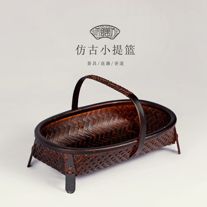 茶道盒竹茶盘茶托盘 竹编功夫茶具收纳篮 大漆复古中式小提篮便携