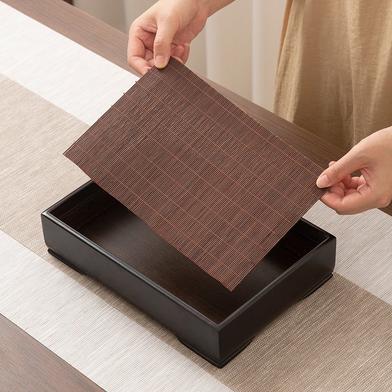 竹柒阁复古紫竹大漆竹茶盘茶台茶盘干泡台茶具岩板托盘竹编垫茶席
