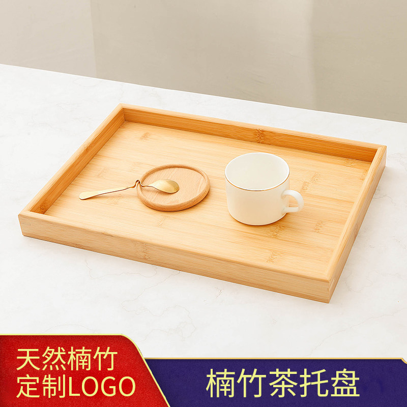 竹木托盘茶盘日式家用水杯盘长方形木制糖果盘酒店餐厅茶具烧烤盘