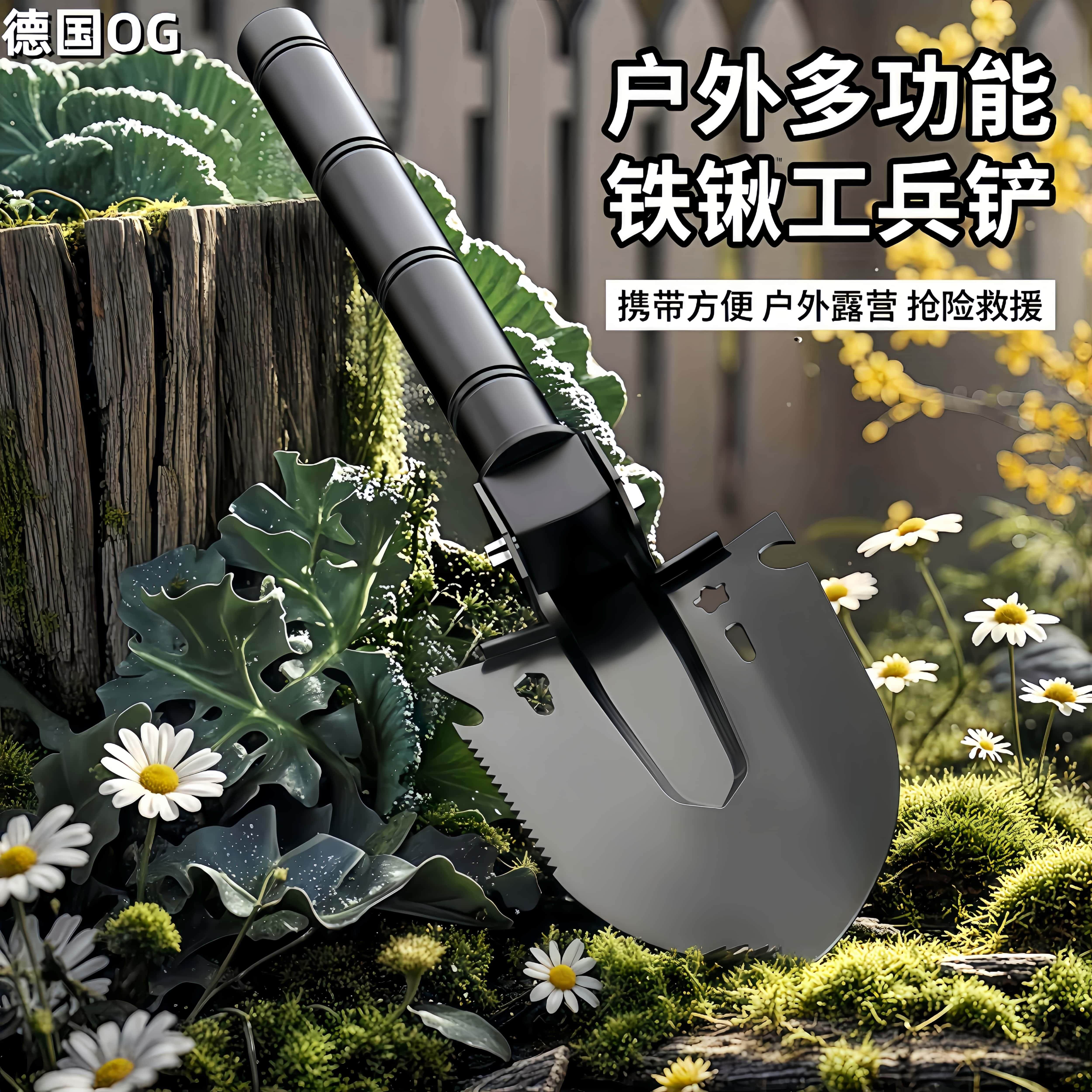 户外工兵铲德国锰钢多功能折叠车载兵工铲子开山钓鱼登山探险装备