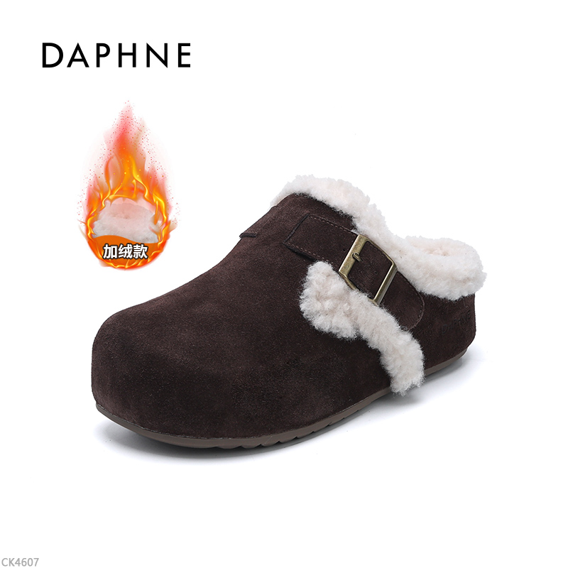 Daphne/达芙妮女鞋休闲鞋2025冬勃肯加绒包头拖保暖毛毛鞋一脚蹬
