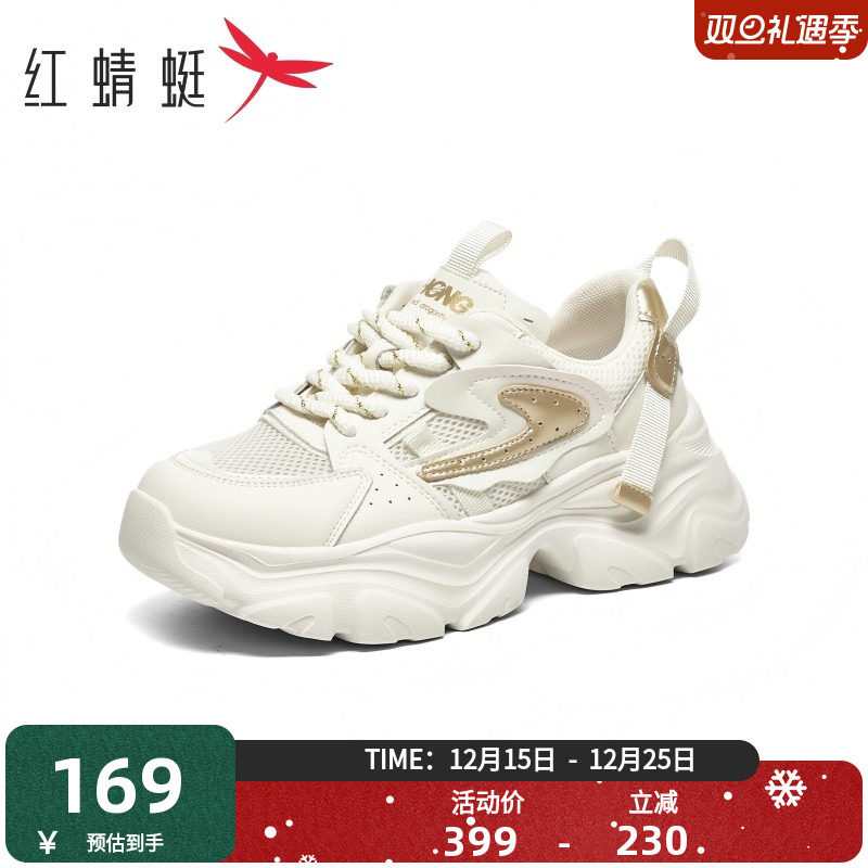 红蜻蜓老爹鞋女鞋休闲鞋子女舒适透气网面运动跑步鞋女BX5208501