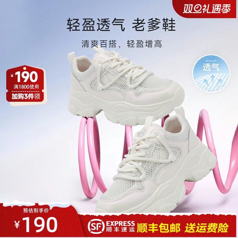 红粉知己2025夏厚底老爹鞋女鞋休闲鞋时尚百搭网面透气增高运动鞋
