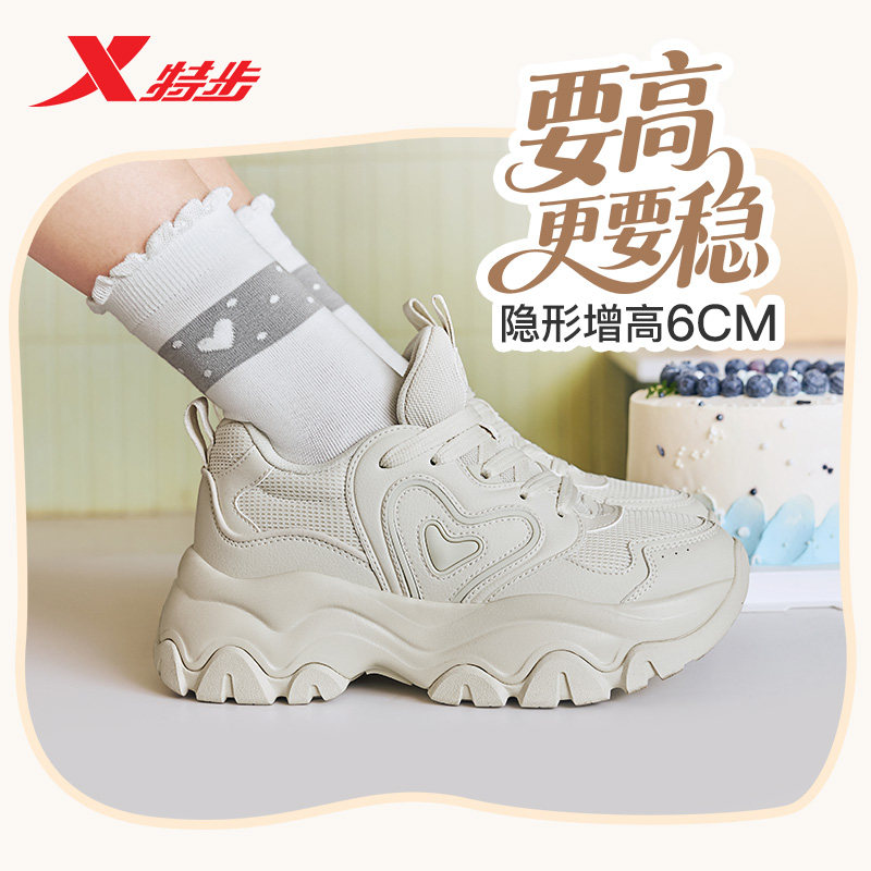特步嗨6鞋丨女鞋休闲鞋夏季网面厚底内增高足弓支撑轻便老爹鞋男