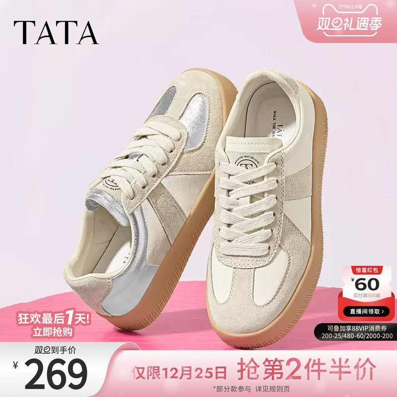 TATA他她银色德训鞋女鞋复古板鞋女鞋休闲鞋子2024冬季新WT801CM4
