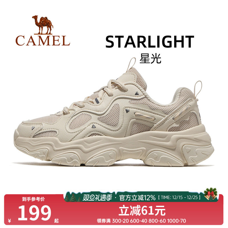 骆驼星光运动鞋女2025新款鞋百搭增高老爹鞋透气女鞋休闲鞋慢跑鞋