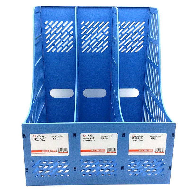 蓝色三格文件架 硬胶三合一书架 3格资料架 A4书立资料整理架